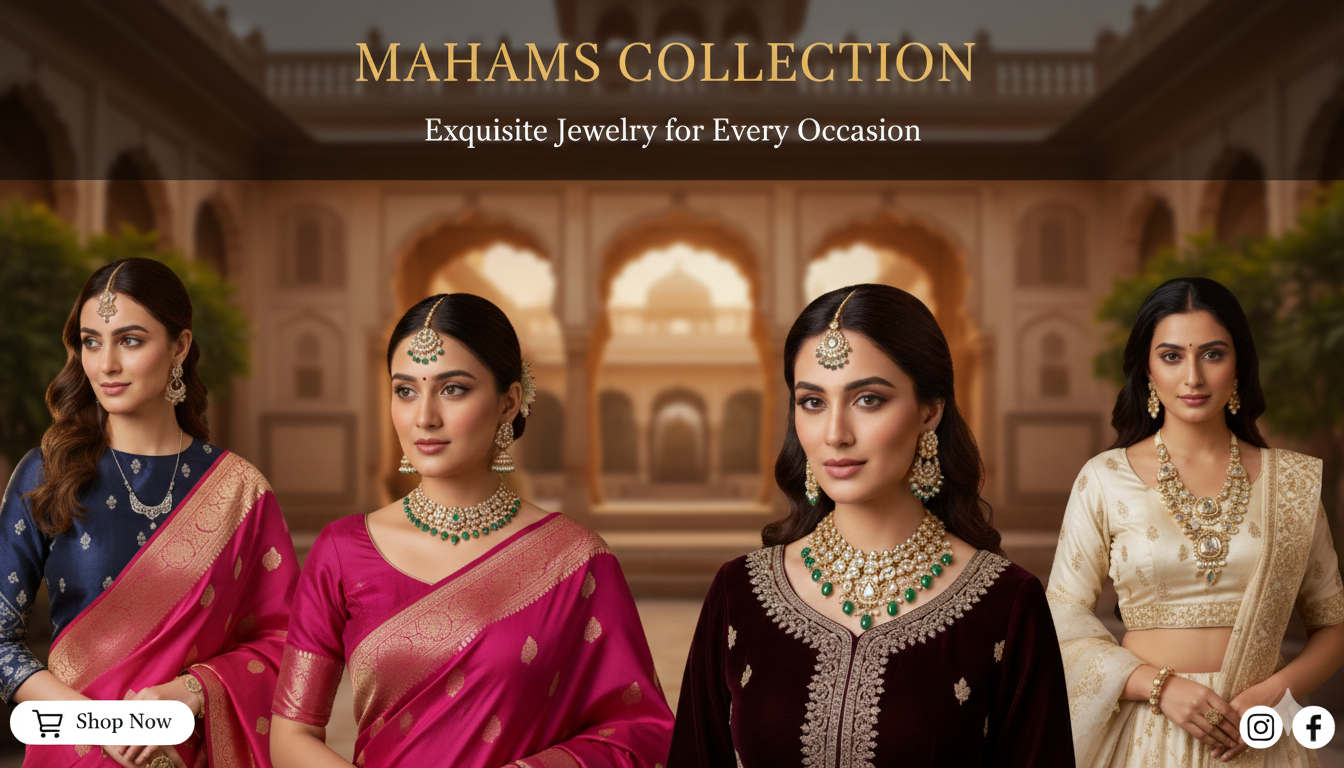 Antique Gold Kundan-Style Choker Set with Danglers - Available in Amber & Multi-Color