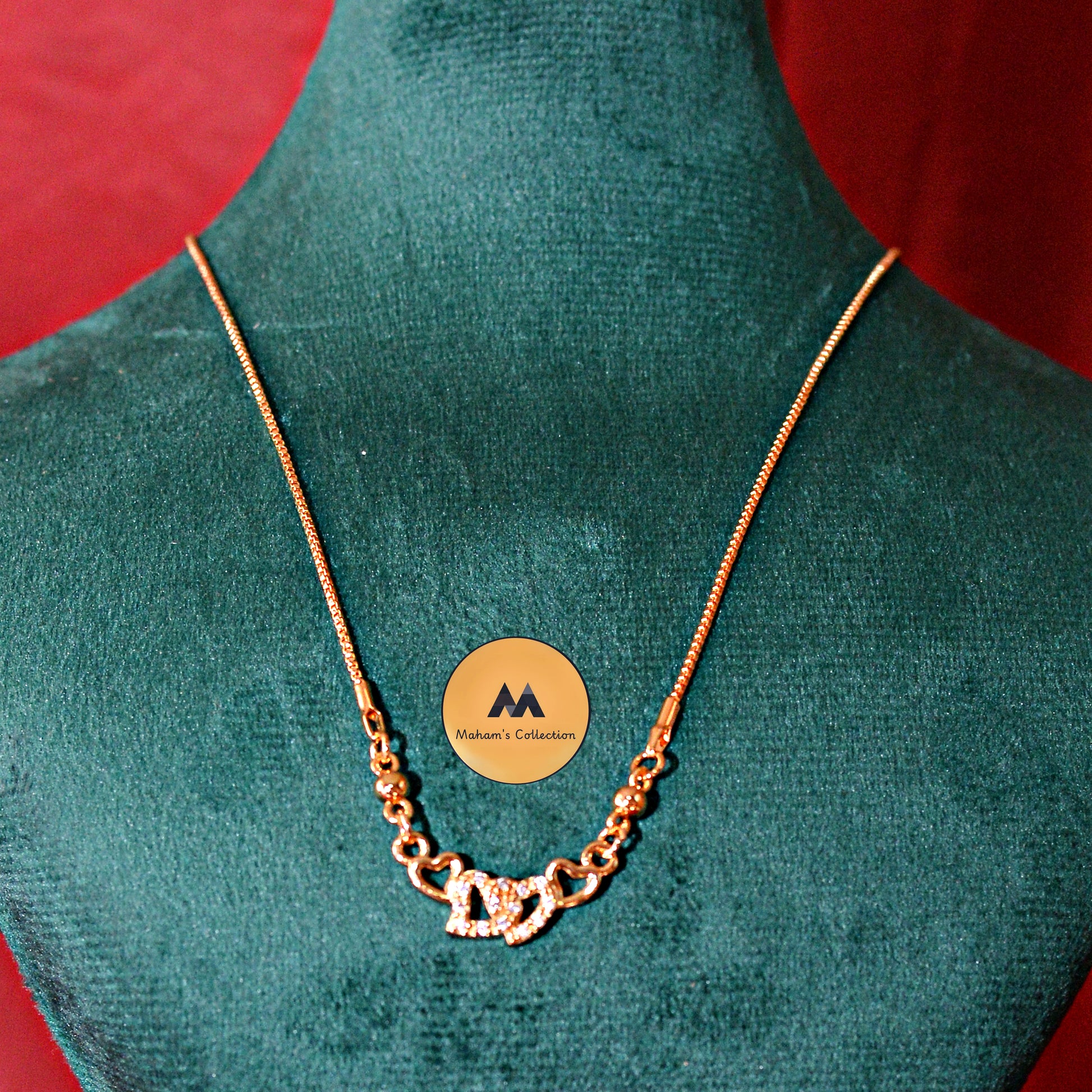 Celebrate love and connection with this stunning Rose Gold Toned Interlocking Hearts Necklace from Maham's Collection. This elegant piece captures the essence of romance, making it a perfect gift or a meaningful addition to your own jewelry box.